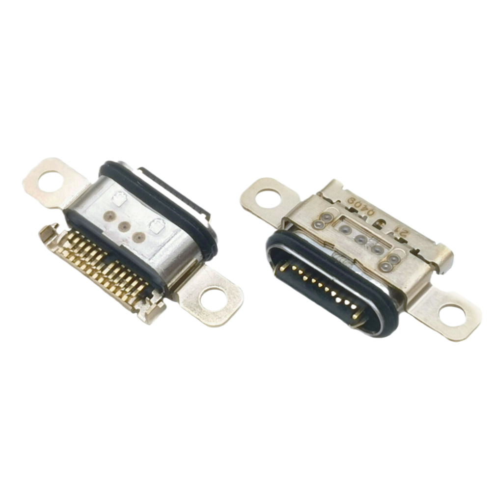 TYPE C 單排24P母座 沉板式免焊型連接器 帶雙耳螺絲孔